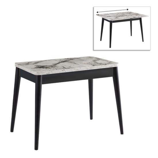 Τραπέζι Dolunay επεκτεινόμενο χρώμα λευκό εφέ μαρμάρου - μαύρο 100x60(120x100)x79,5εκ.